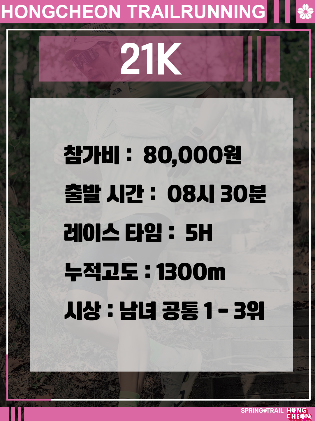 홍천 군민의 일상이 스며있는 이곳에서 지역 주민의 건강증진과 자연 친화적 스포츠인 트레일러닝 문화를 확산시킴은 물론 나아가 트레일러닝을 사랑하는 전국 모든 러너들에게 신풍을 일으키는 계기를 마련하고자 합니다.